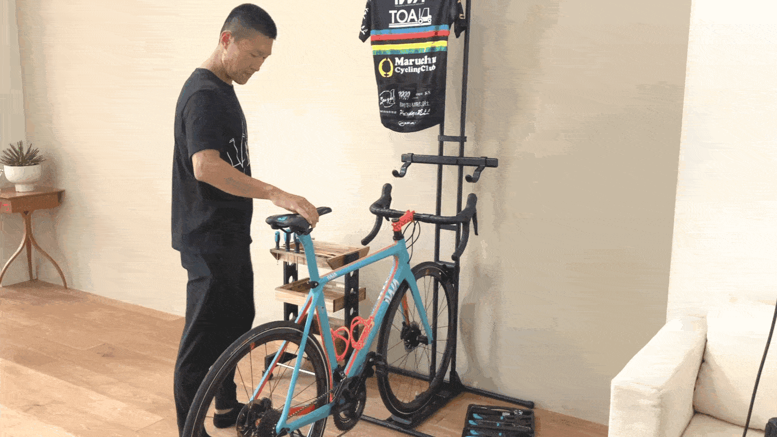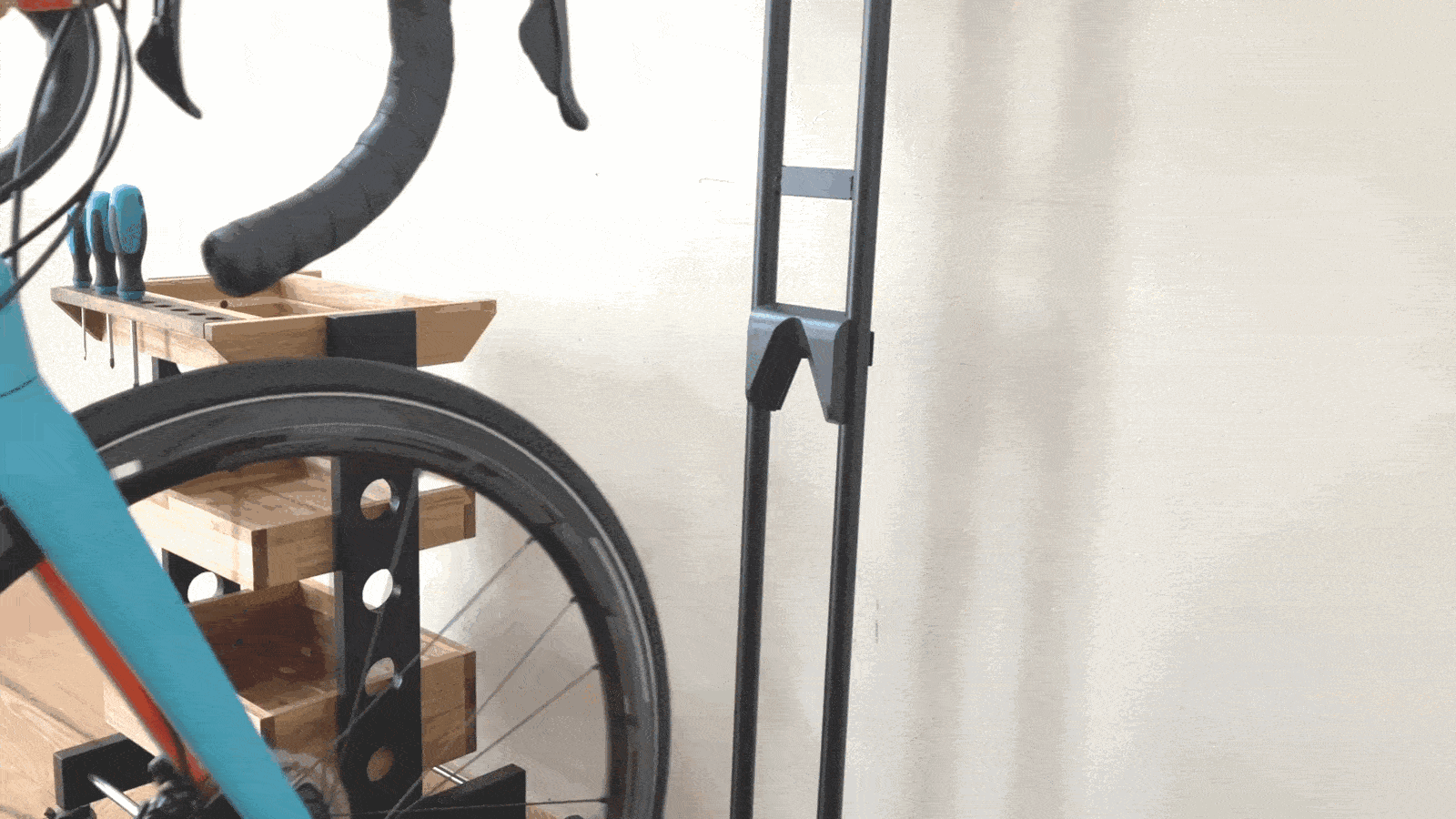 ※一般的なロードバイクのドロップハンドルを基準に設計していますので、幅の広いフラットハンドル等は壁に干渉してしまう可能性があります。