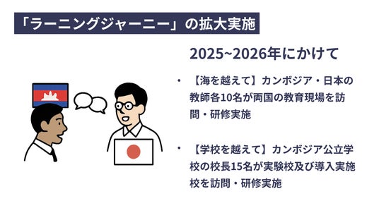 逆に、カンボジアの教師が日本の学校現場を訪れ、異なる教育文化を体験する交流も計画している。
