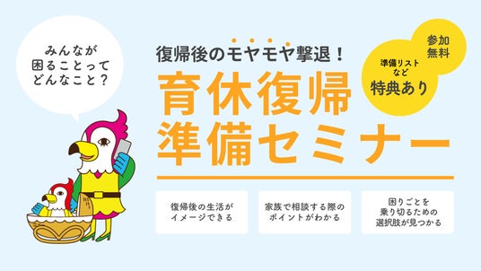 この春、育休を終えて職場へ復帰される方を対象に、復帰後の生活準備を進めるためのセミナーを開催します。
