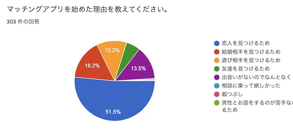 結果を見てみると、51.5%の人が「恋人を見つけるため」と回答しています。