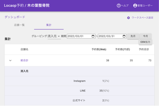【4】LINEからの予約数を集計できるので効果測定が可能