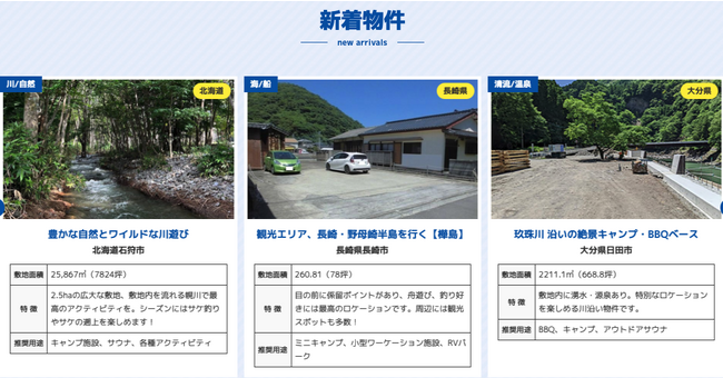 通常の検索サイトから不動産機能をもつサイトに変換し、候補地の売買・賃貸・運用が可能となりました。いままではバーベキューユーザーだった人が、今後はアウトドアの経営者になれるようになります。また、経営が順調な施設では第二施設、第三施設を探す際に利用ができるようになります。反対に経営不振の場合でも土地の売買や賃貸などを探したり契約することが可能となります。