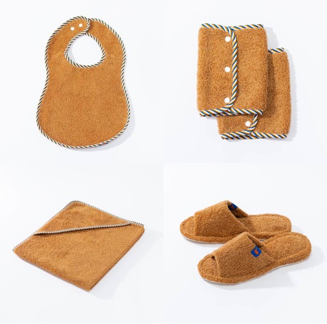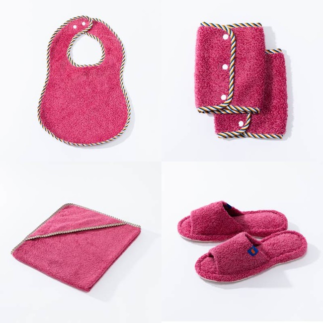 ファンタジックな風景が広がる「ピンクラグーン」「ナミブ砂漠」「カナリア諸島」の3つのエリアからインスパイアされた3色を、スタイ、おくるみ、ベルトカバー、ルームシューズに施しました。