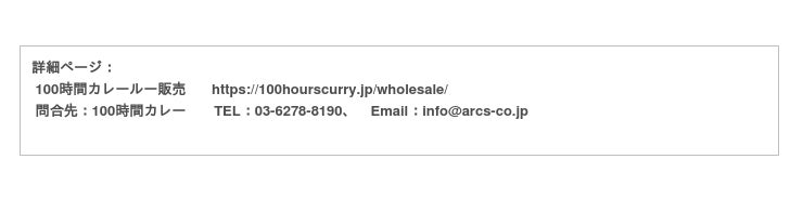 カレーに本気で愛を注ぎ全力で商品作りに取り組み、一皿から生まれるお客様の笑顔、喜びに全てをかけている当社の『100時間カレー』を多くの方にお届けできるようこれからもコラボレーションを展開して参ります。