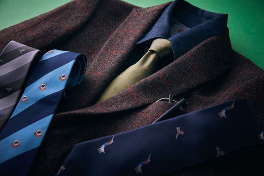 国内外にあるタイの産地に直接足を運び、高品質でトレンドを抑えたオリジナルデザインの提案に定評がある「麻布テーラー」のフィルターを通し、鴨や象などの「ハンティング・ワールド」のアーカイブモチーフをベースにした、現代的アメリカントラッドなムードが漂うタイが誕生しました。