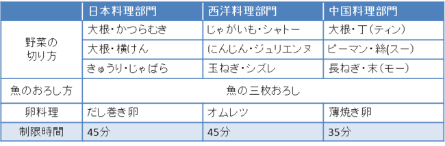 日本・西洋・中国の3料理部門のいずれかを選択し、学内選抜を経た者