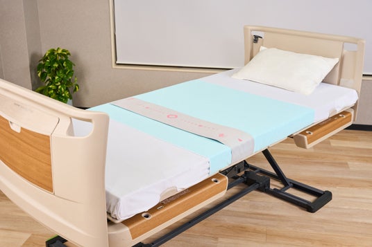 ベッドマットレスの下に設置する非接触・非拘束・非侵襲のセンサーマットが、利用者様の心拍・呼吸・体動・睡眠の状態をリアルタイムでセンシングし、サーバーを介してパソコンやタブレット端末等で確認することができます。介護記録システムやナースコールとの連動も可能です。