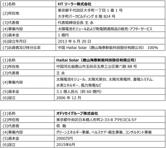 Haitai Solar(唐山海泰新能科技股份有限公司)の日本法人(100%子会社)です。HTソーラーの太陽電池モジュールに関する高い技術力と豊富な実績、そしてオデッセイグループが有する日本における発電所開発のノウハウと顧客ネットワークを相互に連携させることで、新たな顧客接点の創出を目指します。