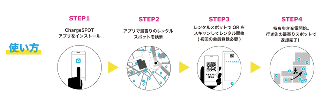 日本設置台数シェアNo.1※の「ChargeSPOT」はモバイルバッテリーを「どこでも借りられて、どこでも返せる」をコンセプトに2018年4月からサービスを開始し、全国の駅、空港、商業施設や飲食店、コンビニエンスストア、公共施設などを中心に現在約40,000台まで設置台数を拡大しています。