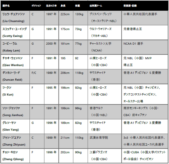 B.LEAGUEの出場クラブの発表と併せて、本大会のために結成された中華圏のトップ選手が集結する「ベイエリアドラゴンズ」の出場登録選手の一部が決定しました。香港にて5度の優勝経験を持つダンカン・リード選手や、中国代表チームのスター選手であるリュウ・チュアンシン選手などの名選手が名を連ね、その他有力選手については今後発表予定です。オーストラリア・ナショナル・スケットボール・リーグ(NBL)で6度の優勝を誇り、オーストラリア代表チームを史上初のオリンピックメダル(2020年東京オリンピック・銅メダル)に導いたブライアン・ゴージャン氏率いるベイエリアドラゴンズは、マニラを一時的な本拠地とし、日本とマニラにて、日本トップレベルのチームとアジア最高峰の決戦を繰り広げます。