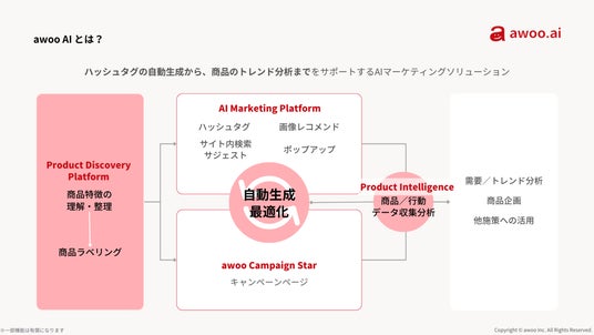 事業内容:AI技術を活用したマーケティングソリューション、awoo AIの提供