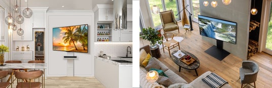 工事不要で壁掛けのような美しいディスプレイを実現できるのも大きなメリット。お部屋をすっきりさせ、インテリアとしても華を添えます。