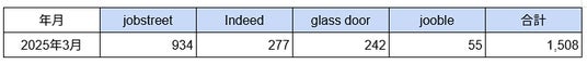 調査対象サイト:jobstreet、Indeed、glassdoor、jooble