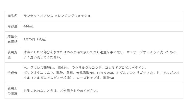『サンセットオアシス クレンジングウォッシュ』は、夏のリゾートスパのような優雅な香りのボディウォッシュです。女性のデリケートな肌を優しく洗い清潔に保ってくれます。