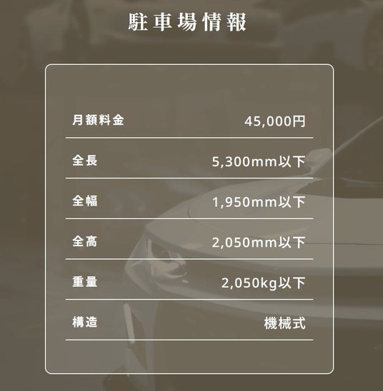 お部屋の詳細ページには駐車場の情報の記載もございます。