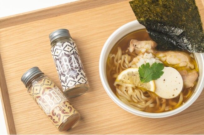 ヌードル麺、スープ、海老だしスパイス、有明塩、有明海で採れた海苔、鹿島で作った乾燥レモンが入ったセット。