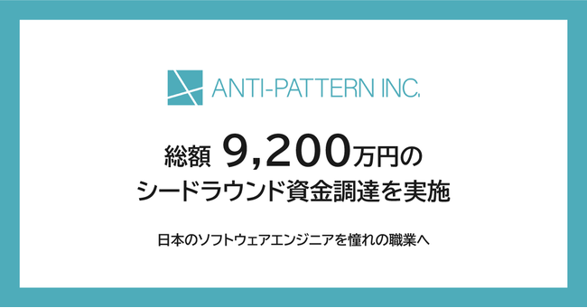 「日本のソフトウェアエンジニアを憧れの職業へ」を理念に掲げる株式会社アンチパターン(本社:東京都港区、代表取締役 小笹 佑京、以下当社)は、エンジェル投資家等から総額9,200万円の資金調達を実施したことを発表いたします。