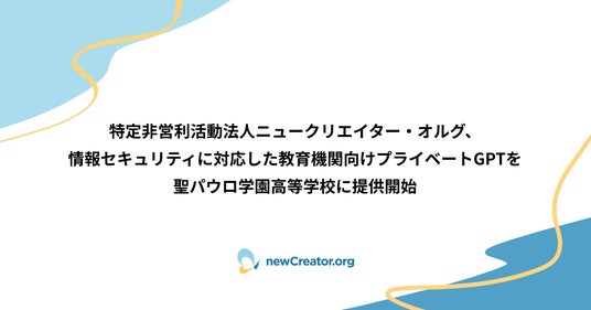 教育機関向けのDXソリューションや生徒・教員向けの生成AI教育を提供する、特定非営利活動法人ニュークリエイター・オルグは、情報セキュリティに対応した教育機関向けプライベートChatGPTを聖パウロ学園高等学校に提供を開始いたしました。教員のみならず生徒にも提供できる環境を提供することで、教育機関として必要な安全性や不適切な利用を防止するだけでなく、学内の利用を積極的に推進できるようになりました。