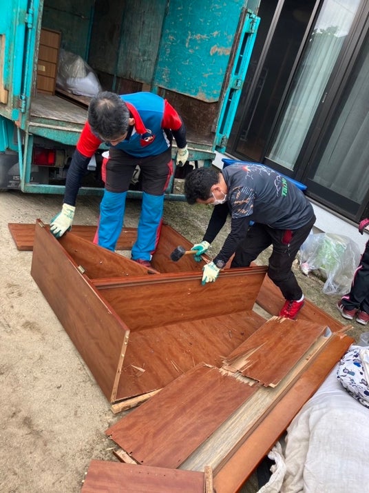 弊社スタッフにより不用品家具が分解・運搬されるところ