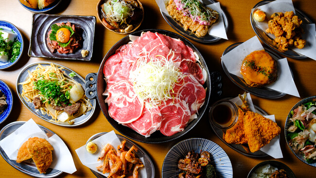 ◆町に愛される肉スタンド!日常を楽しみに変える『肉酒場ケナシバ』では、蒸しジンギスカンや黒毛和牛のすき焼き、低温調理の肉刺しなど肉料理を豊富に取り揃えております。