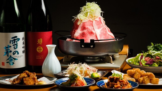〈「黒毛和牛のすき焼き」霜降&赤身の2種食べ放題に、牛肉2種炭火焼もついた「春の黒毛和牛すき焼き食べ放題コース」を3,980円(税込)概要〉
