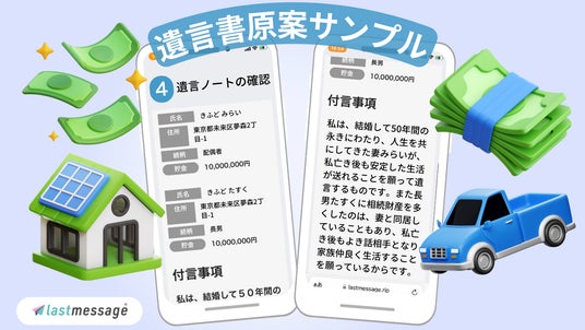 「lastmessage」は、人生の最期の言葉を届けるためのネット遺言*、法的な効力を持たないものとしてスタートしましたが、『正式な遺言書をDXできないか』というニーズを受けて、この「1人でできる!公正証書遺言」が誕生しました。