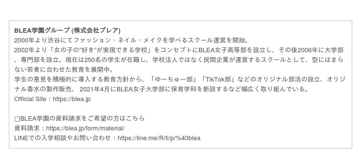 株式会社ウィゴー(本社:東京都渋谷区恵比寿 代表取締役社長:園田恭輔)では、ファッション・ネイル・メイク・モデルが学べるBLEA(ブレア)学園グループ(所在:東京都目黒区東山 学院長:柳 延人)との共同企画にて製作したコラボレーションアイテムを2021年11月26日(金)より、WEGO ONLINE STORE及びSHOP LISTにて順次発売する運びとなりました。
