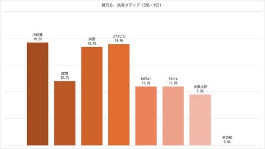 購買商品の情報を共有するメディアとしては、第1位:小紅書(RED)、第2位:ビリビリ動画、第3位:抖音(ドウイン)。