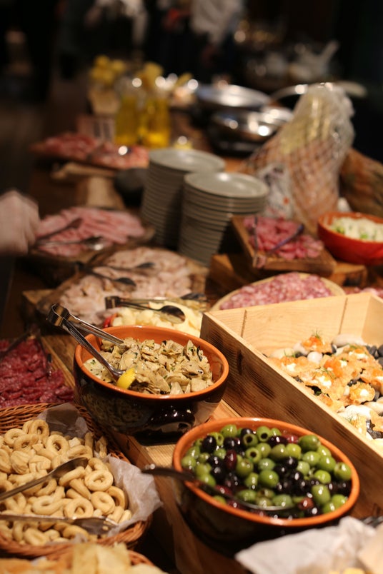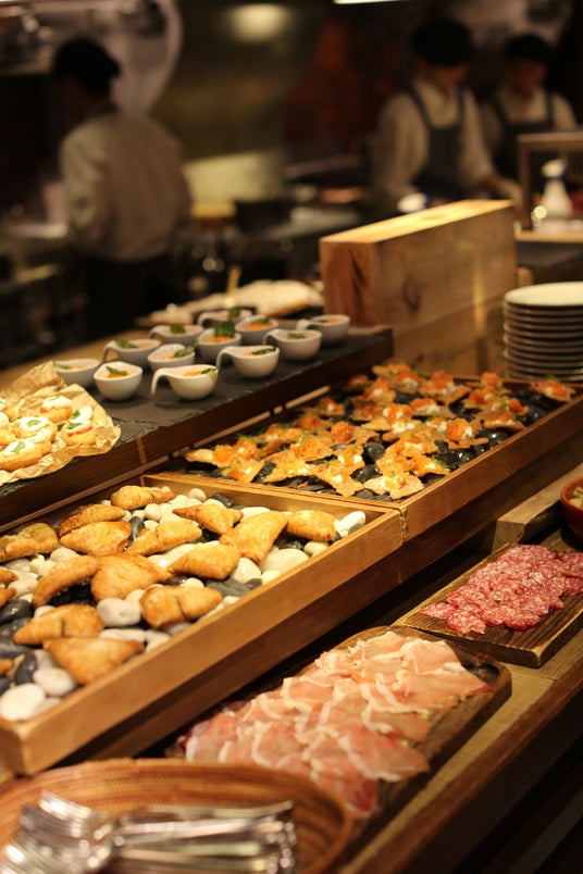 プロシュット、サラミ、チーズ、ピッツァ、ニョッキとフリーフード、フリードリンクでご提供。