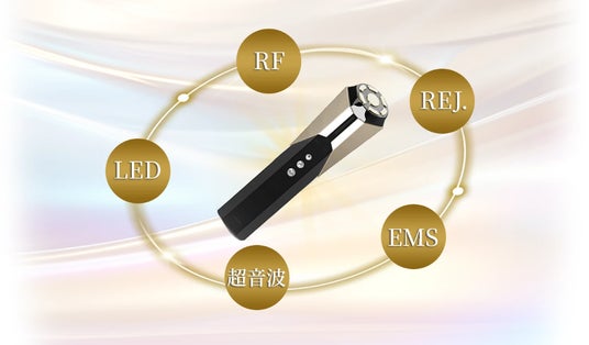 - 5種の機能を3モードで効率的に・ REJ (Rejuvenation :リジュビネーション)・ RF(ラジオ波)・ Sonic(超音波)・ EMS(表情筋ケア:リフトアップ)・ LED(光美容)