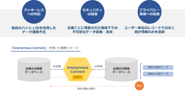 自社で独自に同様の仕組みを用意したいという企業様向けに、「Anonymous Connect」をベースとしたデータクリーンルームの提供が可能です。