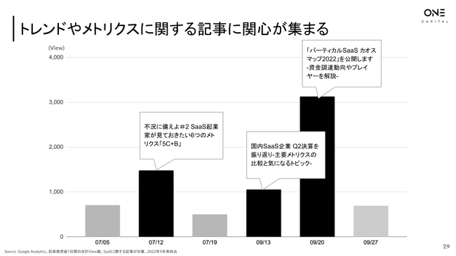 SaaSに特化したVCファンドを運用するOne Capital株式会社(本社:東京都港区、代表取締役CEO:浅田慎二)は、2022年第3四半期におけるSaaS市場のトレンドをまとめた「Japan SaaS Quarterly Report 2022.Q3」を公開しました。誰でも無料で閲覧いただけます:https://onecapital.ck.page/7a3679f0a4