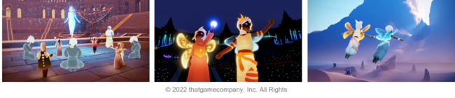 「Sky 星を紡ぐ子どもたち」 は、iOS・Android・Nintendo Switchで大好評配信中のソーシャルアドベンチャーゲームです。誰でも直感的に遊べる設計でありながら、心を揺さぶり、他人とのつながりを感じ、感情を共有する体験となること、そしてそれにより寛容や思いやりの輪を広げ、現実世界においても良い影響をもたらすこと、「Sky」はこうした理想を掲げて、2019年のリリース以降多くのプレイヤーの心をつかみ、精力的なアップデートが続けられています。世界中でダウンロードは累計1億6千万(2022年3月)を突破しており、2022年9月には日本ゲーム大賞2022の優秀賞を受賞しました。 2022年12月にはPlayStation版の配信が決定しており、今後ますますSkyの世界は広がっていきます。これからも多くの方に楽しんでいただき、いつまでも愛されるような作品を作ってまいります。
