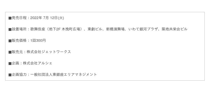 株式会社アルシェ(代表取締役社長:中島祥雄)と株式会社ジェットワークス(代表取締役:荒地功一)は、一般社団法人東銀座エリアマネジメント様の企画協力により、伝統文化の街「東銀座」にフォーカスしたご当地“東銀座ガチャタマ”を発売いたします。
