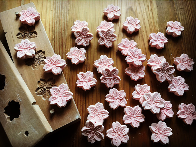 ほどけるような口あたりがおいしい和菓子「和三盆」。菓子木型で型打ちすれば、自分の好きな形の和三盆が作れます。小さなお子様でも楽しめます。