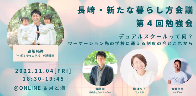 (参考)2023年11月4日(金)第4回勉強会開催「長崎・新たな暮らし方会議 第4回勉強会 ~ デュアルスクールって何?ワーケーション先の学校に通える制度の今とこれから ~」