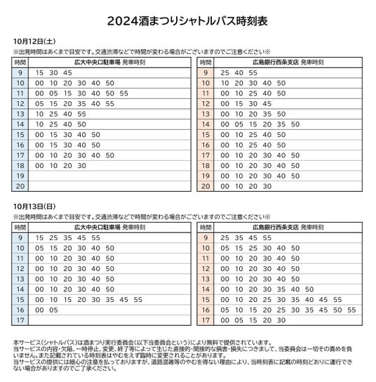 2024酒まつり無料シャトルバス時刻表