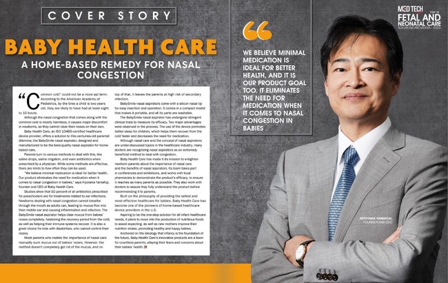 Baby Health Care社は乳幼児期の正しい医療ケアを提唱し、電動鼻水吸引器をはじめとする家庭用の医療機器を製造販売しています。当社の理念と取り組みに関してMEDTECH OUTLOOK誌の目に留まり、この度の受賞に至りました。掲載紙面では、鼻水吸引を家庭で適切に行うことで病気の進行を防ぎ、乳幼児への投薬を最小限に抑えられること等について紹介されています。