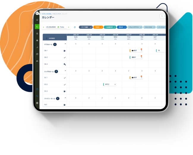 ● 宿泊管理・PMS機能(客室管理、顧客対応記録、フロント会計、売上管理、サービス商品設計など)