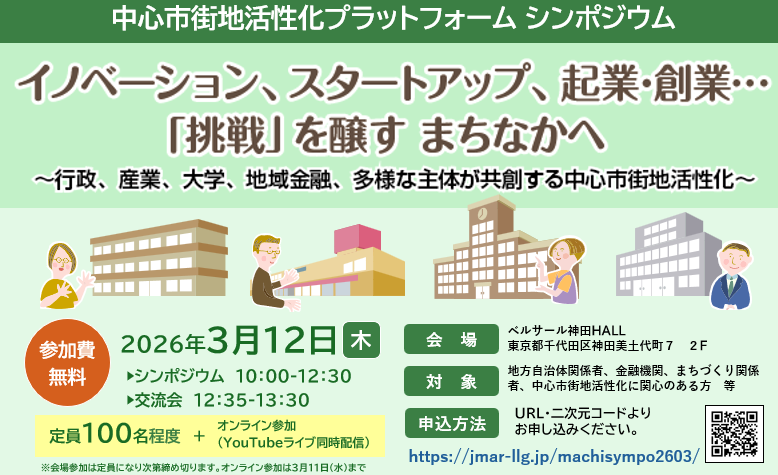 ●対象者:地方自治体関係者、金融機関、まちづくり関係者、中心市街地活性化に関心のある方 等