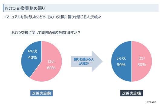- おむつ交換業務における職員間の偏りが減少し、業務全般においても突発業務が減少した