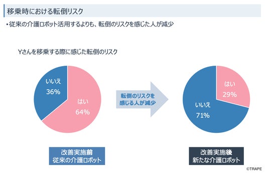 - 利用者の転倒リスクが下がり、1人の職員でも安全に移乗介助を行うことができるようになった