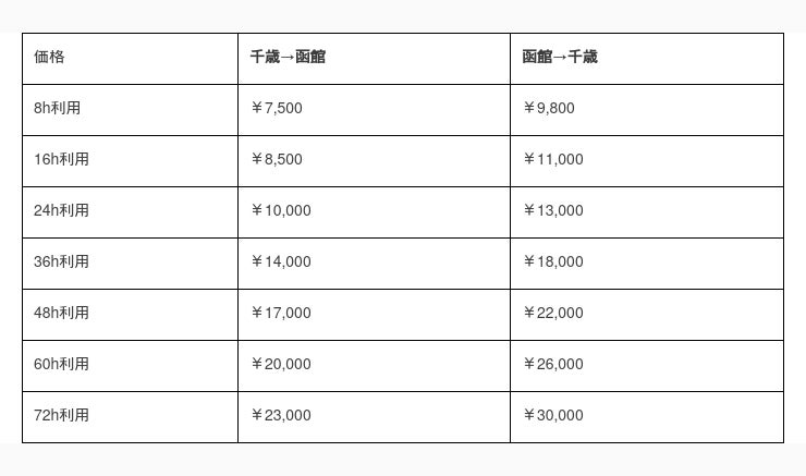 函館⇒千歳、千歳⇒函館の片道路線に価格差を設定