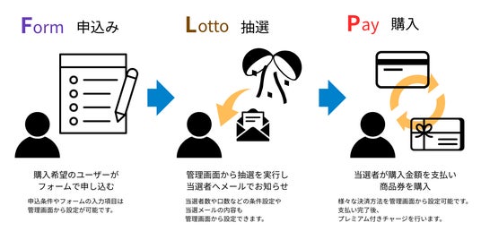 「Form Lotto Pay(FLP)」株式会社コアモバイル(本社:東京都台東区雷門、代表取締役:山川 壽史)はプレミアム付デジタル商品券を抽選販売するために必要な機能(申込・抽選・購入)を一気通貫して備えたシステム「Form Lotto Pay(FLP)」をリリースしました。