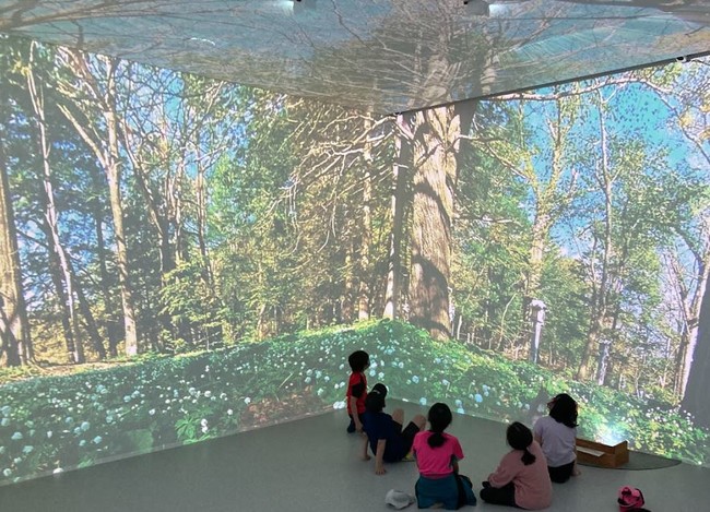 5面の大型マルチスクリーンに十勝の森林や屋久島の天然杉などを映し出し、森の風や木々が揺れる音、複数の天然の木々の香りを再現しあたかも実際に自然にいるような演出を行う日本初(※5)の常設施設です。