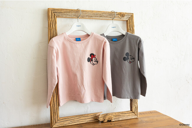 ミッキーとミニーがプリントされた2種類から選ぶことができ、男の子も女の子も着られるカラー展開にもこだわりました。
