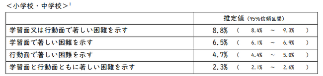 小中学生の8.8%に、学習面や行動面で著しい困難