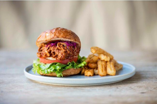 香味野菜と共にゆっくりと2時間蒸し煮したプルドポーク。ホロホロになったお肉を仕上げに香ばしくソテーし、旨味たっぷりの出汁をかけてジューシーに仕上げています。