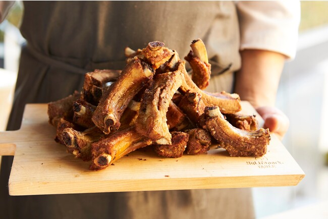 ロース、肩ロース、ヒレ、モモの4種の部位から選べる「厚切りポークグリルステーキ」や、骨付きのバックリブを素揚げした「ドライリブ」、塊肉をホロホロになるまで蒸し煮した「プルドポーク」、低温でゆっくりと調理した「ローストポーク」などさまざまな豚肉メニューをご用意。豚肉を熟知したシェフによる最高の火入れの豚肉を味わえるほか、部位ごとの特長や味の違いもお楽しみいただけます。ここでしか味わえない究極のポークメニューをぜひお楽しみください。