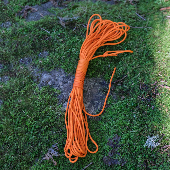 パラコードは雨をしのぐためのタープの設営をはじめ、バックパックにマットを固定したり、あらゆる場面で活躍します。